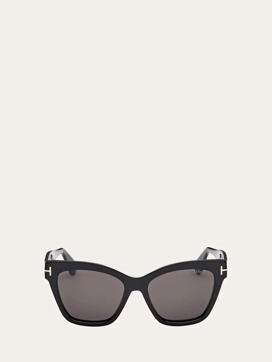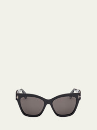 TOM FORD "Elvira" cat-eye sunglasses Eye/bridge/temple (in mm): 55-17-140 Solid lenses Saddle nose bridge Thick arms Curved temple tips with logo insert Acetate 100% UVA/UVB protection Made in Italy Proposition 65 warning for California residents Online Inquiries: BGS21_D562A| Store Inquiries: #4983185