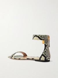 Snake-print has become something of a signature of TOM FORD, epitomizing the brand's glamorous aesthetic. These sandals are made from leather patterned with python scales. The gold-tone padlocks are an elegant touch. Size & Fit - Fits true to size, take your normal size - Italian sizing Details & Care - Slight heel - Snake-effect leather (Calf) - Zip fastening along back