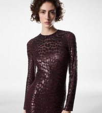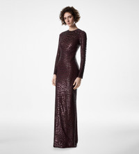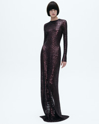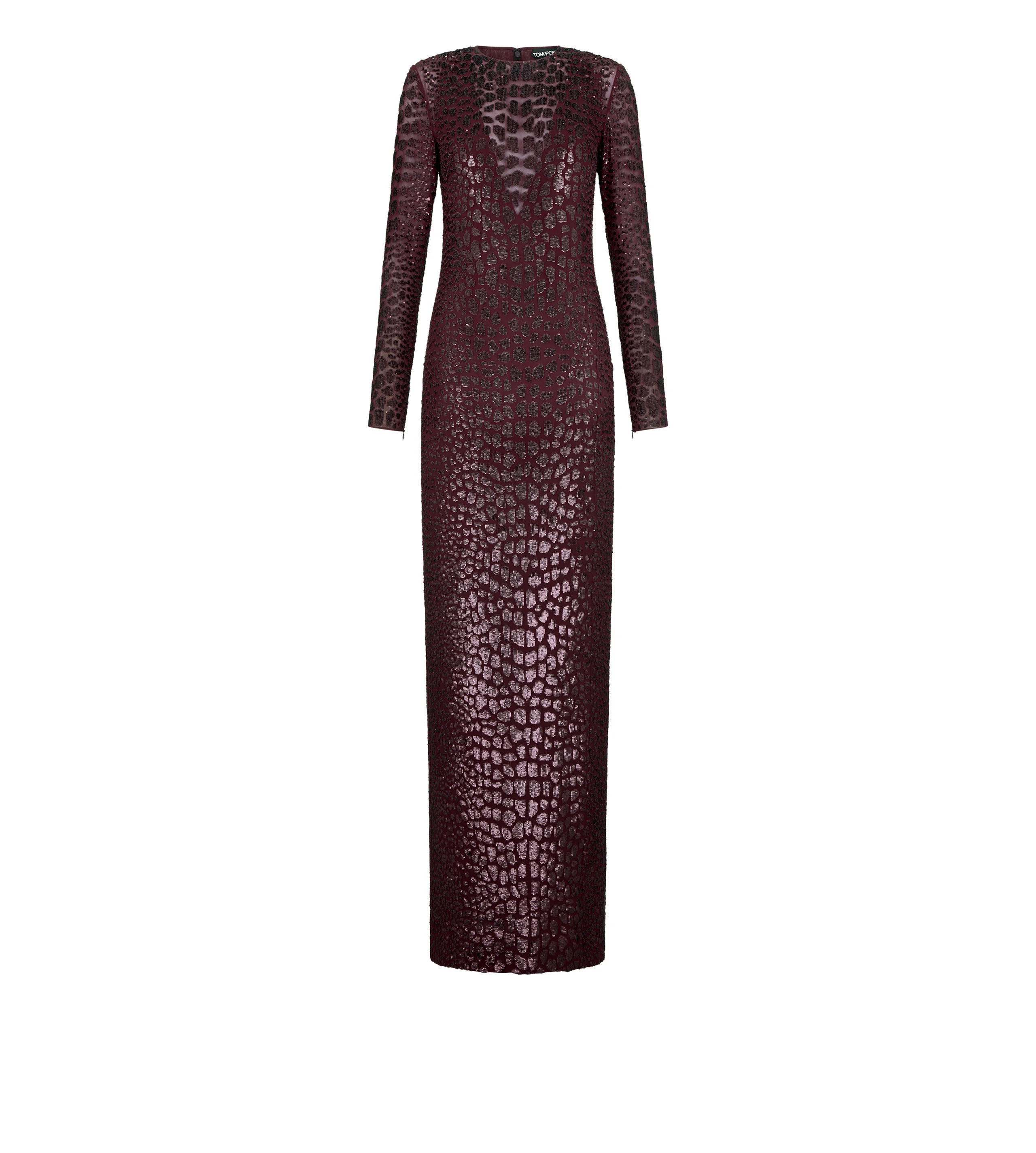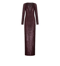 EMBROIDERED CROC EFFECT LONG SLEEVE EVENING DRESS