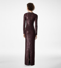 - LONG SLEEVE EVENING DRESS - EMBROIDERED WITH VERTICAL LINES TO CREATE A CROCODILE GRAPHIC - FLOOR LENGTH - DETACHABLE TONAL GEORGETTE SLEEVELESS SLIP - CRAFTED IN GRAPHIC CROCODILE OVERLAPPING LINES OF MICRO SEQUINS EMBROIDERY ON GEORGETTE - EMBROIDERY: 100% POLYESTER ON BASE: 100% SILK