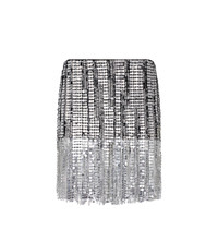 - MINI SKIRT - FULLY EMBROIDERED - INTRICATE EMBROIDERY THAT FLOWS INTO A FREE-HANGING FRINGES AT THE BOTTOM OF THE SKIRT - SIDE INVISIBLE ZIP - FULLY LINED - CRAFTED IN OVERLAPPING METAL CASED STUDS EMBROIDERY - 100% BRASS ON BASE 38% ACRYLIC 32% POLYAMIDE 30% ALPACA - MADE IN ITALY