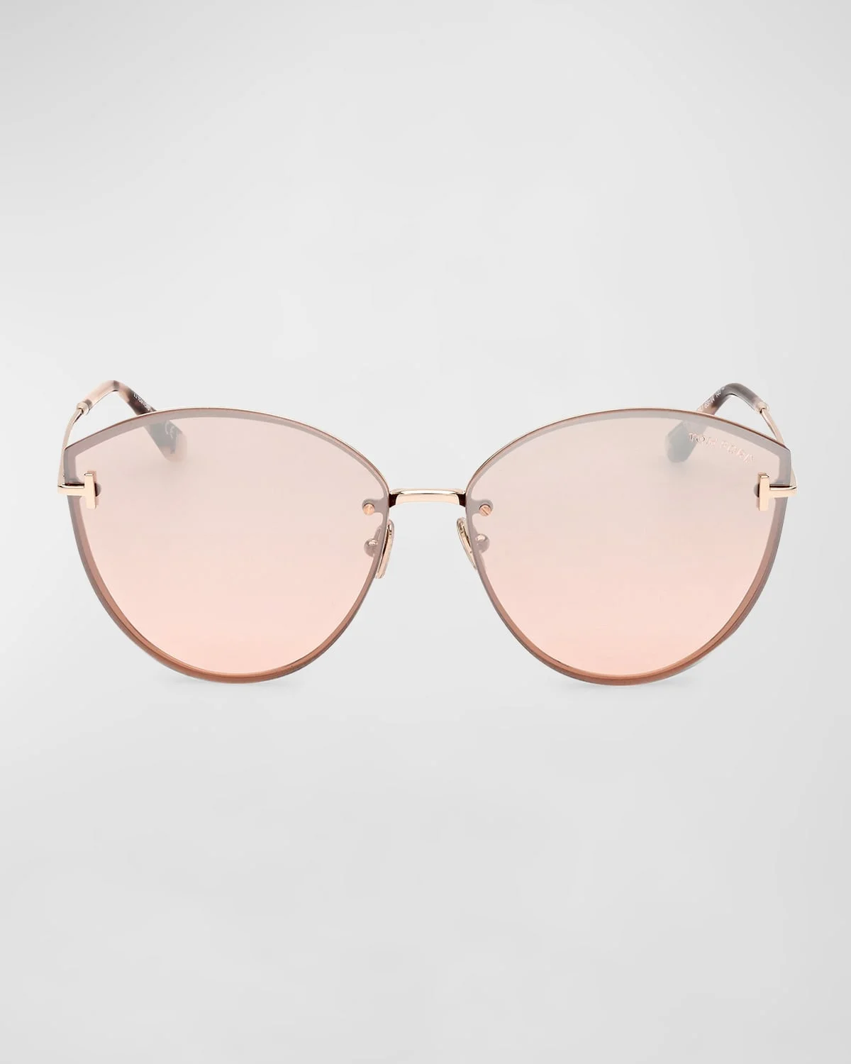- TOM FORD "Evangeline" cat-eye sunglasses in metal - Lens/bridge/temple (in mm): 63-14-140 - Gradient lenses; logo on corner - Adjustable nose pads - Signature T hinges - Thin, tapered arms - Capped earpieces - Spot clean - 100% UVA/UVB protection - Made in Italy - Proposition 65 warning for California residents