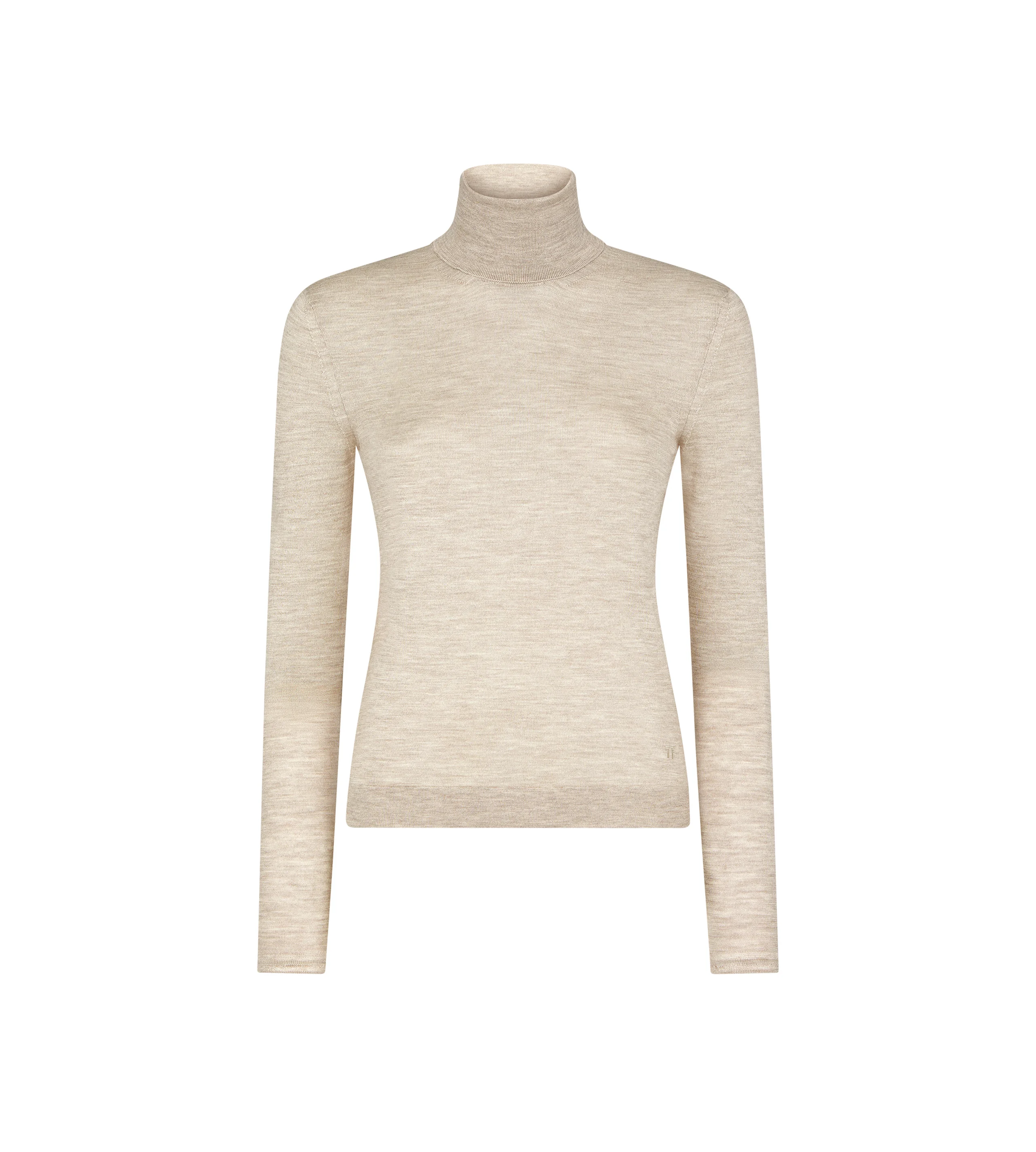 - TURTLENECK KNITTED TOP - SHEER VISCOSE DETAIL ALONG CUFFS - TF EMBROIDERY LOGO - CRAFTED IN FINE CASHMERE SILK - GAUGE 18 - 70% CASHMERE 30% SILK