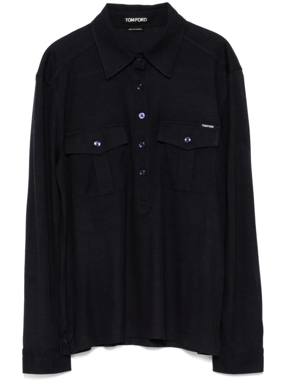 military shirt Highlights - Navy blue - Front button placket - Classic collar - Long sleeves - Ribbed cuffs Imported Composition Viscose 74%, Lyocell 18%, Wool 8% SIZE & FIT Model measurements Height 5 ft 10 in(1.78 m) Bust/Chest 32.67 in(83 cm) Hips 37 in(94 cm) Waist 25.59 in(65 cm) FittingInformation Designed for a slim fit that sits just away from the body offering a close yet comfortable fit Made from a midweight non-stretch fabric, this piece offers minimal elasticity when worn Measurement SLEEVE LENGTH 22 in(55.9 cm) LENGTH 23.5 in(59.7 cm) WAIST 34.01 in(86.4 cm) BUST 32 in(81.3 cm) Washing instructions Hand Wash