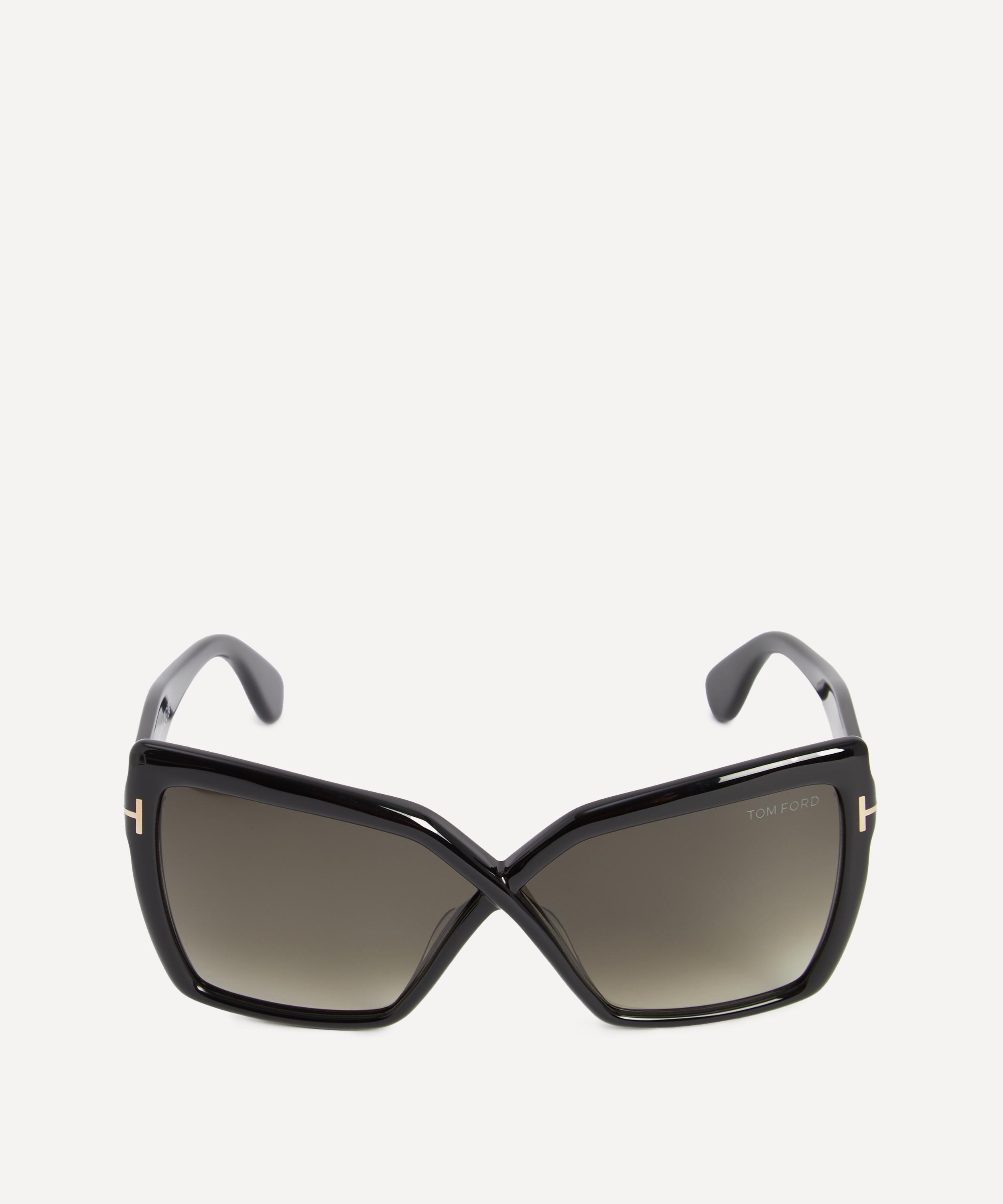 DETAILS Butterfly sunglasses Black acetate Grey gradient lenses 100% UV protection Metal T inlays Made in Italy COMPOSITION & SIZE Acetate Arm: 14cm, Bridge: 6cm, Lens: 6.3cm