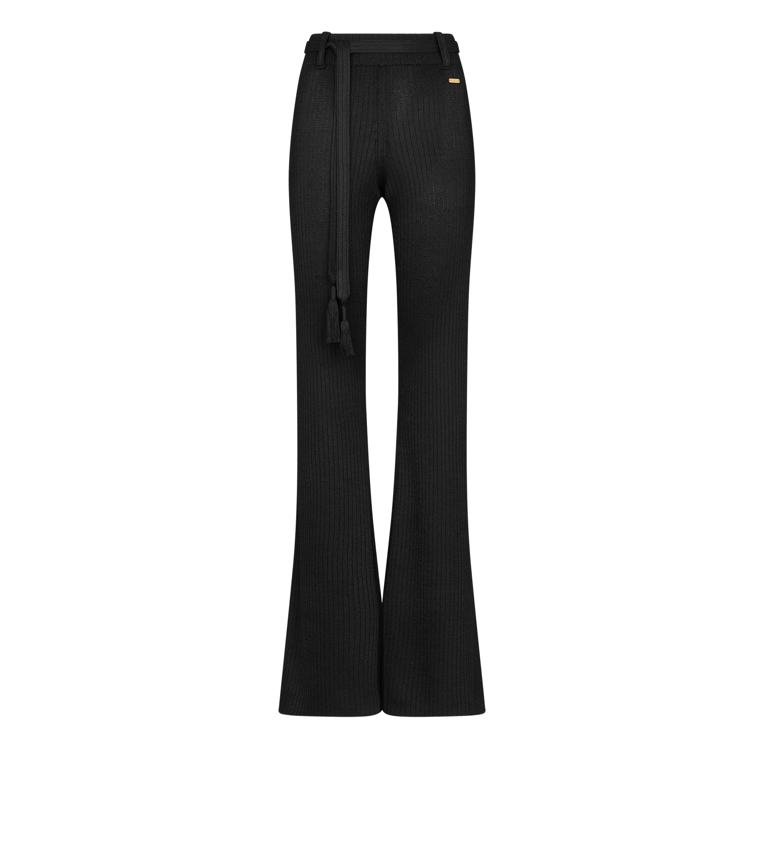 - KNITTED FLARED PANTS - ELASTICATED WAISTBAND - BELT LOOPS - TOM FORD LOGO METAL PLAQUE - SELF BELT WITH TASSELS - CRAFTED IN OPAQUE VISCOSE RIB - 14 GAUGE - 80% VISCOSE 10% SILK 7% POLYAMIDE 3% POLYURETHANE - MADE IN ITALY