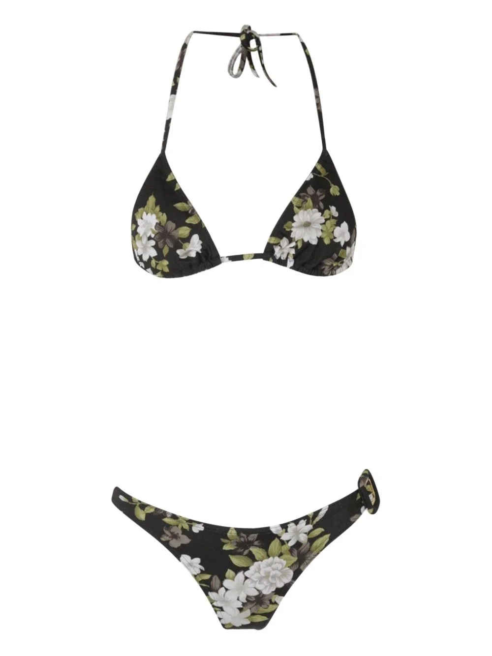 floral-print bikini Highlights - Black - Triangle cup - Tie-fastening straps - Be mindful to try on swimwear over your own garments. Imported Composition Fabric 100%
