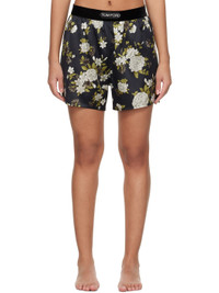 Black Hendrix Floral Stretch Silk Satin Pyjama Shorts