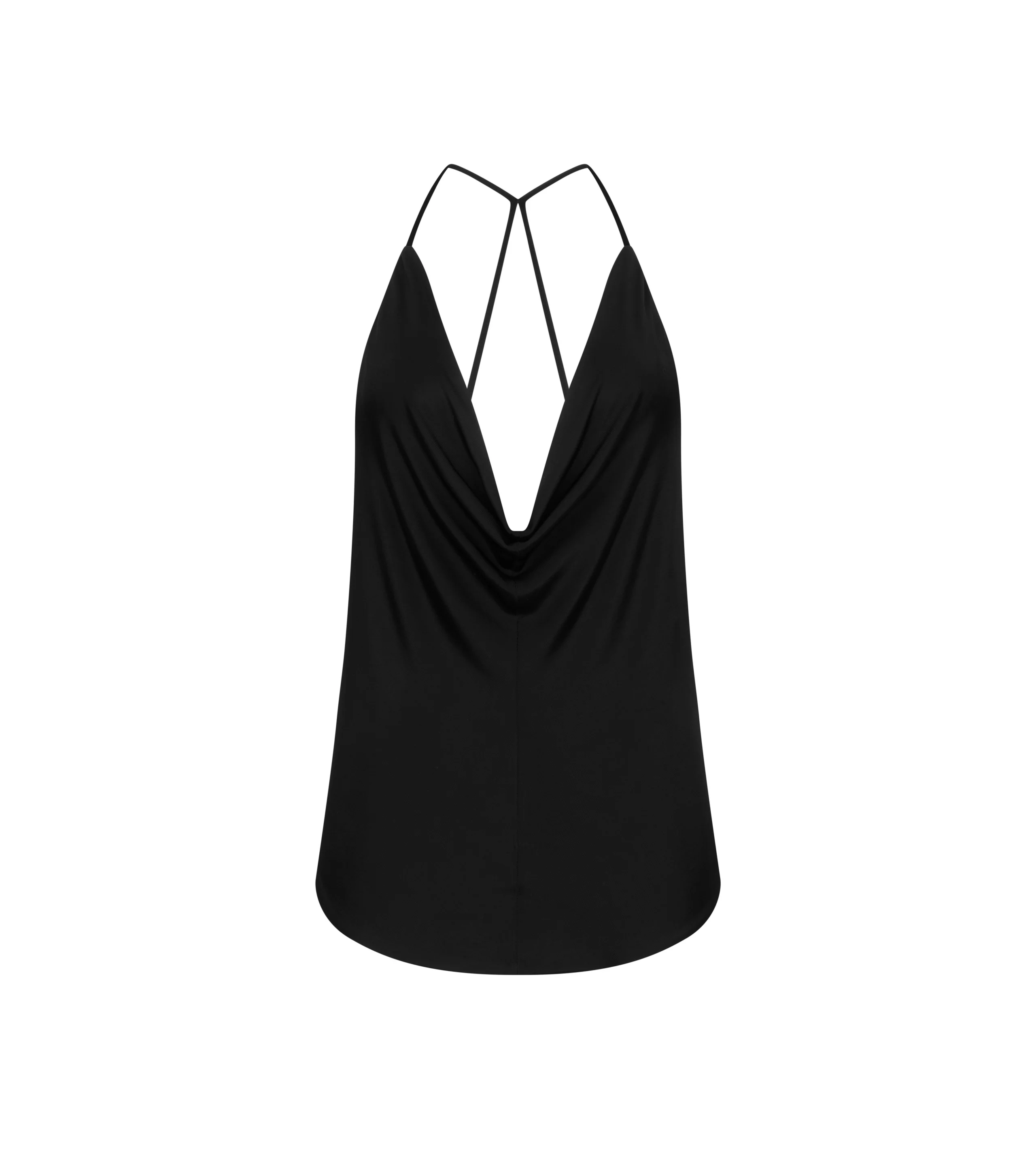 - JERSEY HALTERNECK TANK TOP - COWL COLLAR - SPAGHETTI STRAPS - CRAFTED IN FLUID KNITTED VISCOSE STRETCH JERSEY - 97% VISCOSE 3% ELASTANE