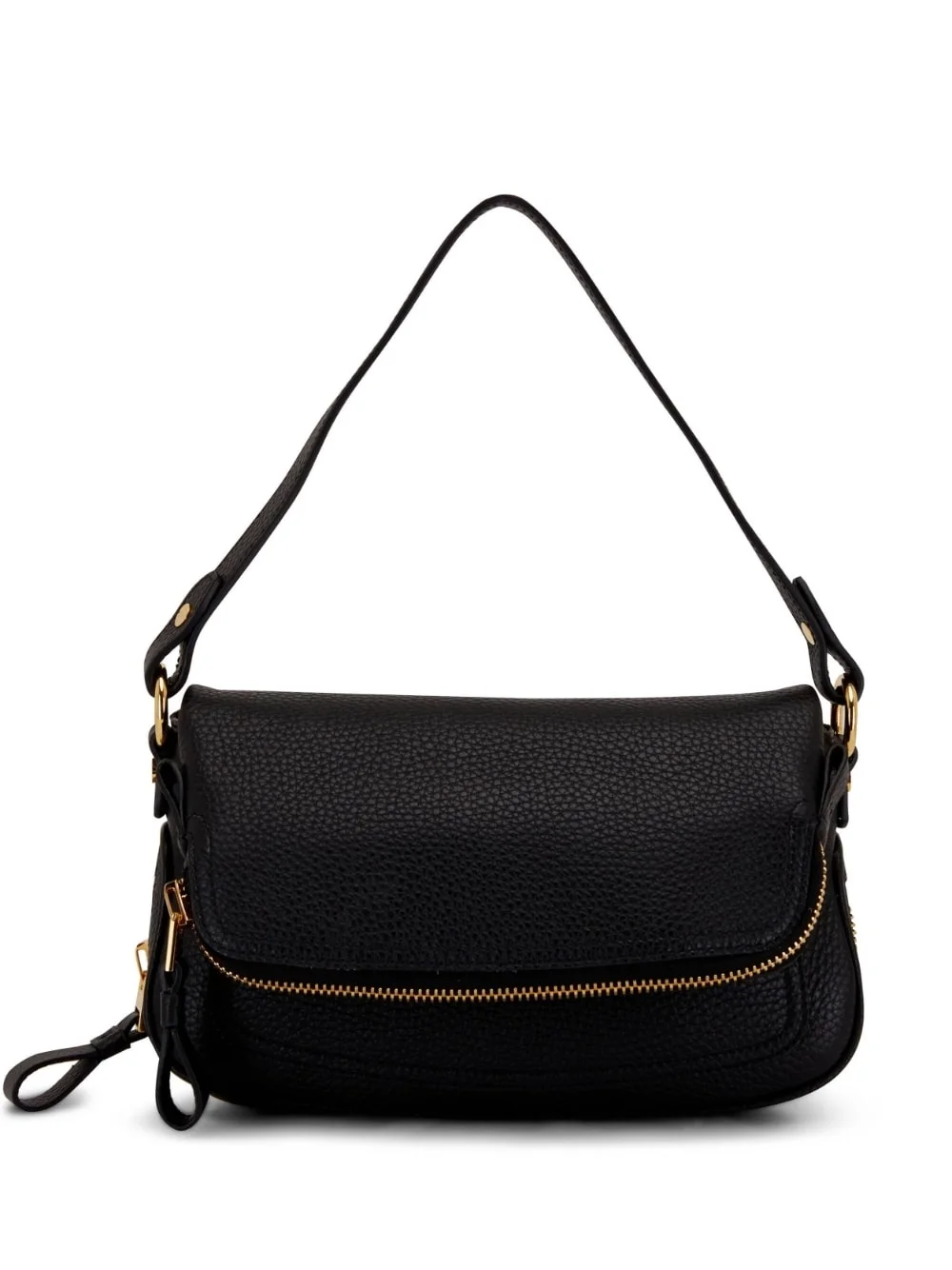 folded-design pebbled-leather shoulder bag jet black calf leather pebbled texture folded design logo-engraved gold-tone hardware decorative zip detailing rectangle body top zip fastening single top handle leather lining Made in Italy Composition Outer: CALFSKIN 100% SIZE & FIT Measurement DEPTH 4.5 in(11.4 cm) HEIGHT 6.5 in(16.5 cm) STRAP 7 in(17.7 cm) WIDTH 11 in(27.9 cm)