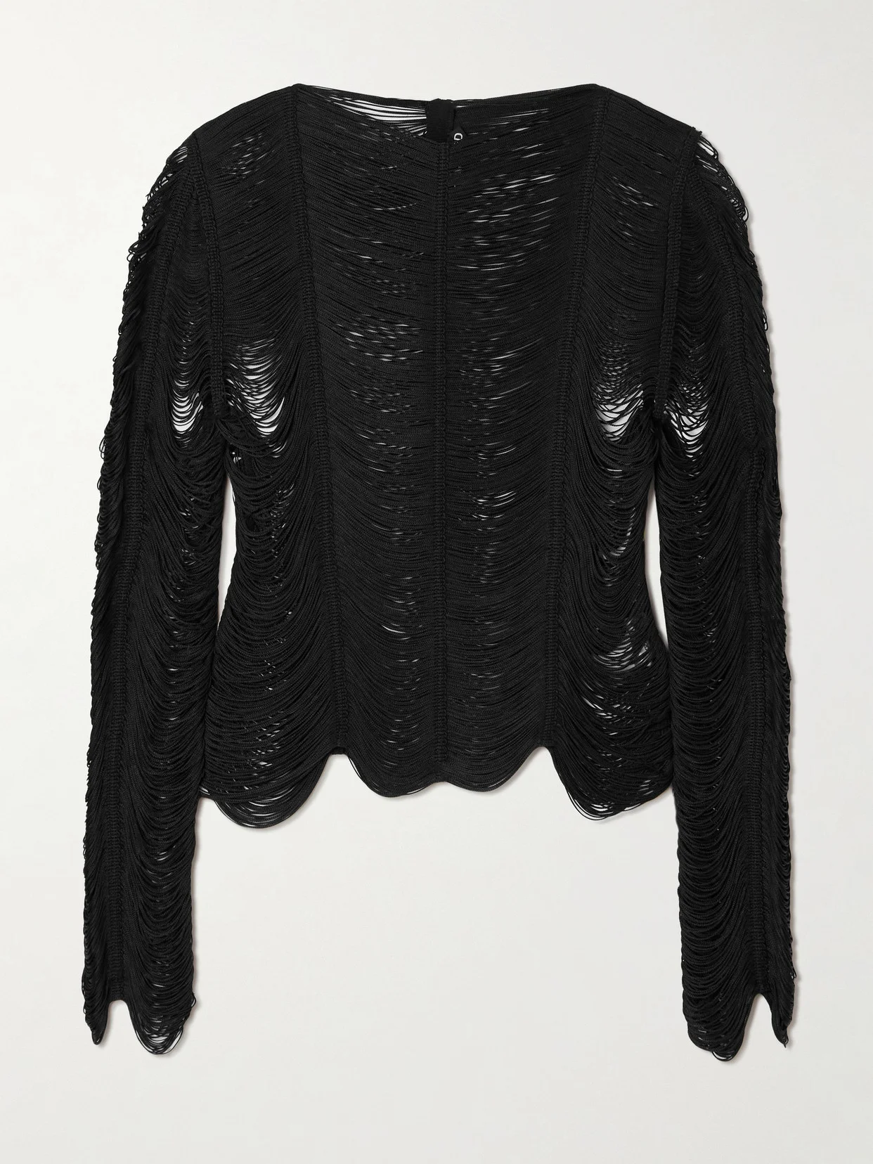 TOM FORD's top speaks to the label's effortless glamour. It's made from slinky black fringed fabric that shimmers as it catches light and is draped beautifully between each exposed seam. Temper the open construction with a tonal bralette for coverage.