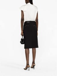 front-slit midi skirt Timeless and sleek, Tom Ford highlights the brand's signature design style on this skirt from the AW23 collection. This is showcased through the use of sophisticated materials and a monochromatic colourway. Highlights - Black - Virgin wool - Silk trim - High waist - Front slit - Concealed front fastening - Belt loops - Two side welt pockets - Two rear welt pockets - Below-knee length - Straight hem Made in Italy Composition Outer: Virgin Wool 100%, Silk 100% Lining: Viscose 54%, Polyester 46% SIZE & FIT Model measurements Height 5 ft 10 in(1.79 m) Bust/Chest 31.1 in(79 cm) Hips 35.03 in(89 cm) Waist 24.01 in(61 cm) FittingInformation This midi-length skirt is intended to be worn just below the waist The vented hem offers movement at the rear Made from a midweight non-stretch fabric This piece fits true to size – take your usual size Washing instructions Dry Clean Only