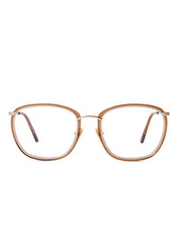 geometric-frame glasses Highlights - Brown - Gold-tone frame - Clear lenses - Blue light-blocking filter - Geometric frame - These glasses come with a protective case. - All glasses from farfetch are sold as non-prescription frames. Made in Italy Composition Metal 100% SIZE & FIT Measurement Arm Length 5.31 in(13.5 cm) Bridge Width 0.74 in(1.9 cm) Lens Diameter 2.12 in(5.4 cm) Total Width 5.51 in(14 cm)