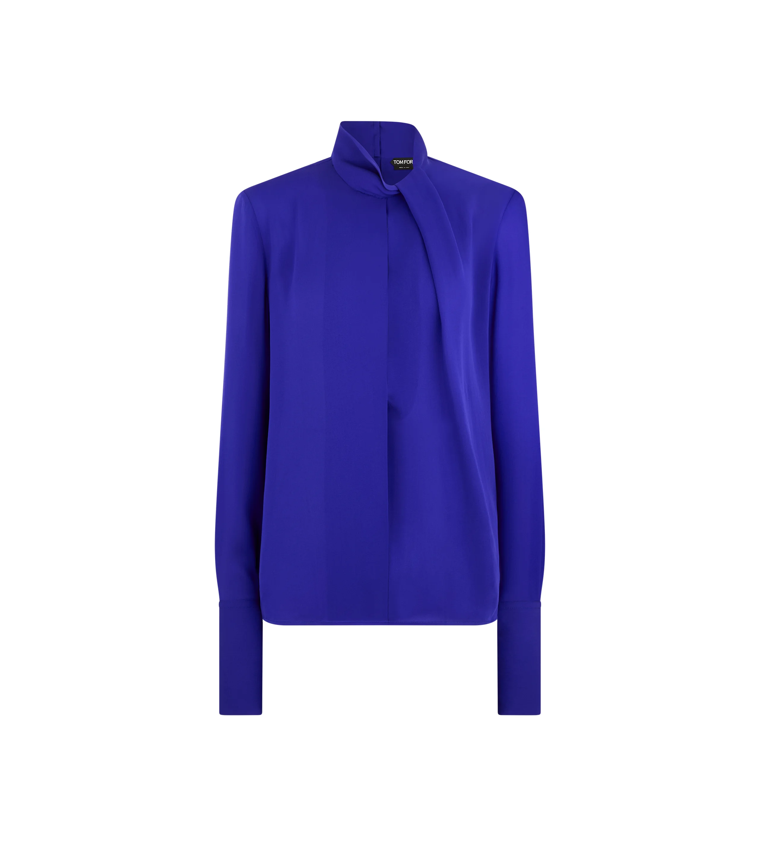 - LONG SLEEVE DRAPED COLLAR BLOUSE WITH CUT-OUT - DEEP KNIFE PLEAT AT CENTRE FRONT - KISSING PLEAT DETAIL AT CENTRE BACK - CONCEALED HOOK AND EYE CLOSURE AT CENTRE BACK COLLAR - SELF COVERED BUTTONS ON CUFFS - CRAFTED IN WASHED SILK GEORGETTE - 100% SILK