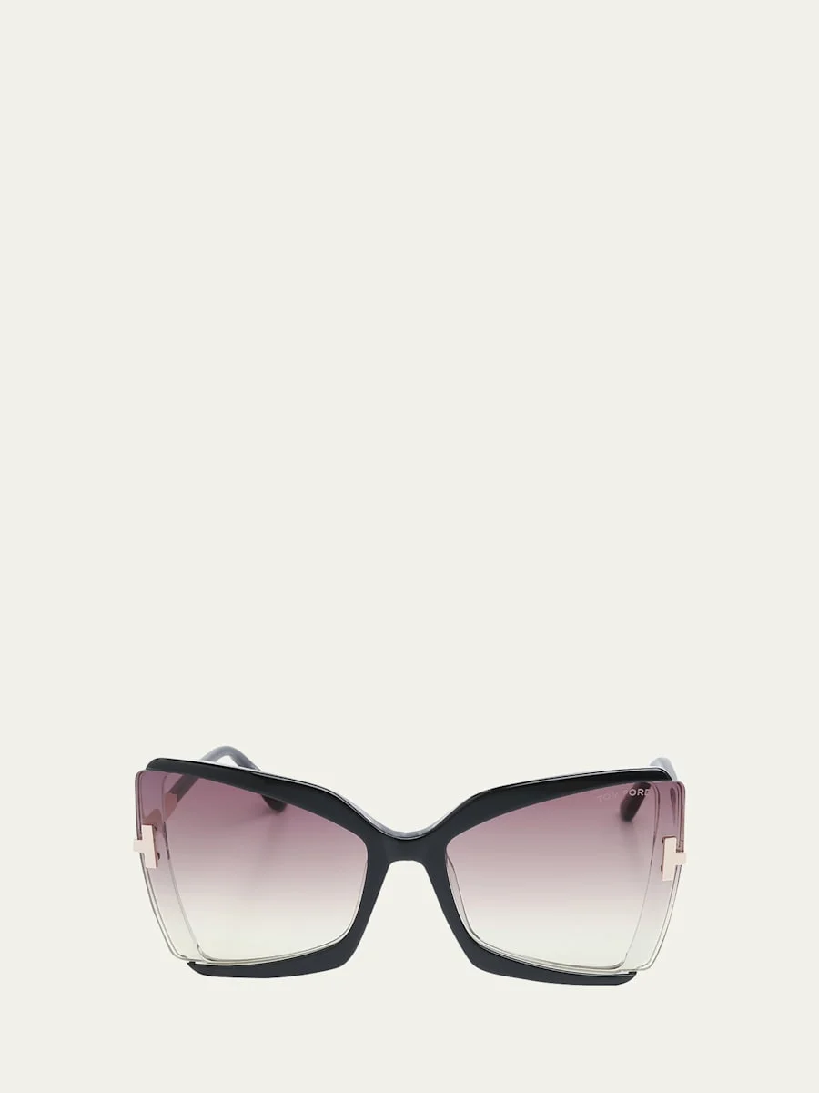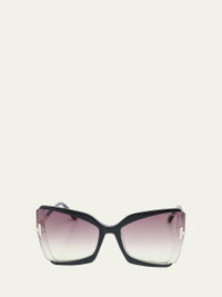 TOM FORD "Gia" semirimmed butterfly sunglasses in acetate Lens/bridge/temple (in mm): 6319135 Gradient lenses; logo on corner Saddle nose bridge Signature T hinges Thin, tapered arms Spot clean 100% UVA/UVB protection Made in Italy