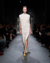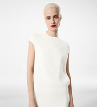 - CAP SLEEVE EVENING DRESS - UPPER SIDE SLIT, STITCHED AT THE WAIST AND REOPENING AT THE HEM - DRAPE EFFECT AT THE WAIST - DOUBLE IN SELF FABRIC - INVISIBLE ZIP AT CENTRE BACK - CRAFTED IN DOUBLE GEORGETTE STRETCH - 94% SILK 6% ELASTANE