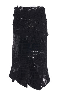Guipure Lace and Croc-Effect Midi Skirt black