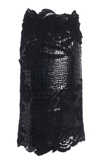 PRODUCT DETAILS - As featured on the Spring / Summer '23 runway, try styling with metallic accessories for a party-ready look - A-line cut, guipure lace inlay, croc-embossed leather, unlined - Zip fastening at side - This style fits true to size, we suggest taking your normal size - Composition: 100% Goat Leather - Dry Clean Only - Made in Italy