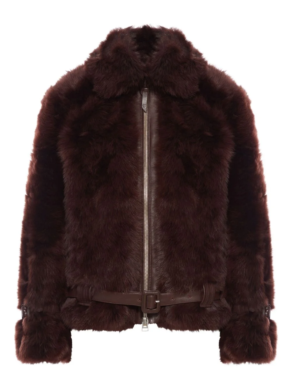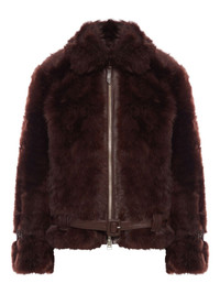 shearling belted jacket Highlights - Brown - Self-buckle fastening - Looped waist and cuffs - Leather belt - Front closure - Leather zip puller with embossed logo Made in Italy Composition Calf Leather 100%, Calf Hair 100% Washing instructions Specialist Cleaning