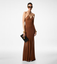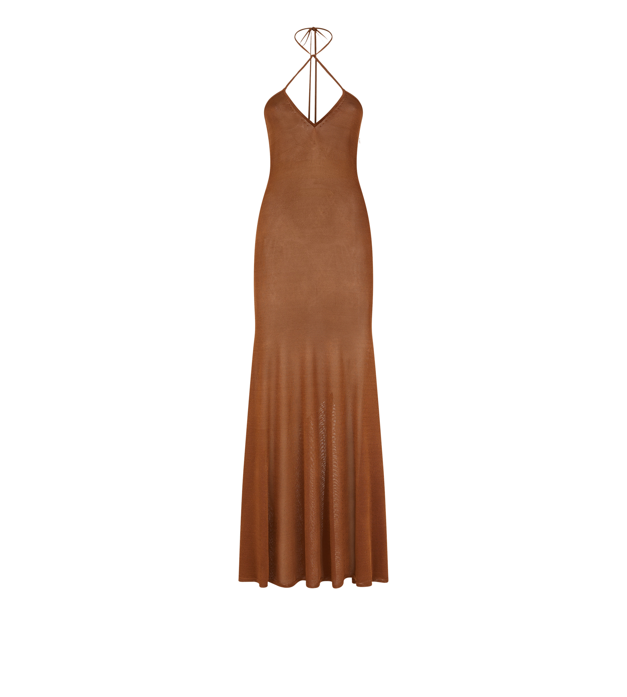 - HALTERNECK KNITTED MAXI DRESS - ANKLE LENGTH - CRAFTED IN SLINKY VISCOSE JERSEY - GAUGE 14 - 100% VISCOSE