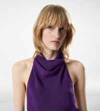 - HALTERNECK COCKTAIL DRESS WITH OPEN BACK - INVISIBLE SIDE ZIP - CRAFTED IN ROUND SILK SABLE - 100% SILK