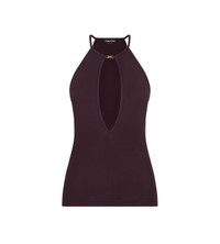 PRODUCT NO: TSJ623-JEX167 Minimal and powerful, this TOM FORD halterneck top reveals the body through a precise front cut-out, secured with a signature TF metal buckle. The deep neckline and fluid viscose crepe jersey complete the modern look. Composition: 100% Viscose Made in Italy