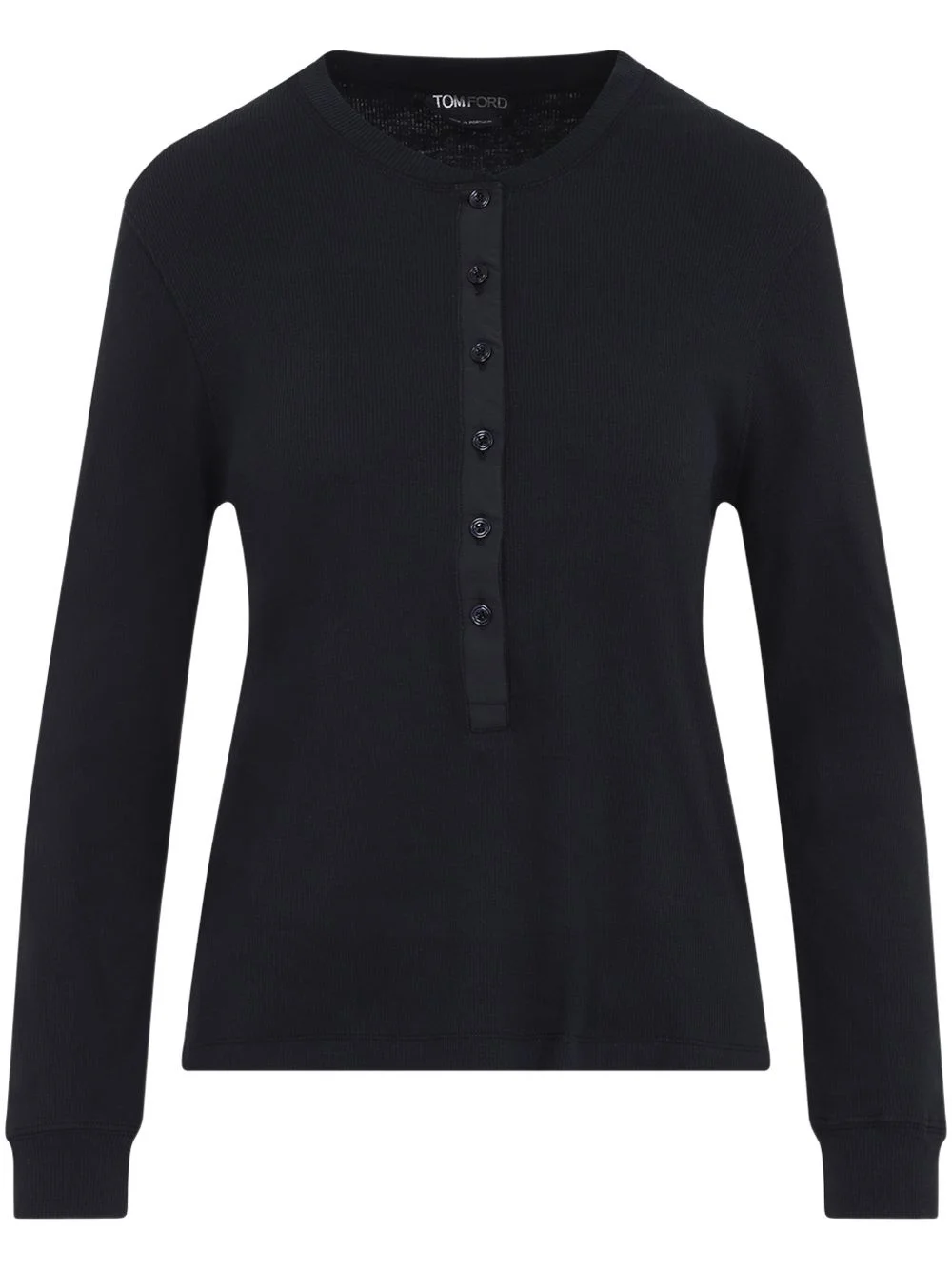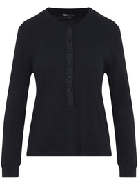ribbed-knit T-shirt Highlights - Black - Short front button fastening - Long sleeves - Straight hem Imported Composition Cotton 85%, Silk 15% SIZE & FIT Measurement SLEEVE LENGTH 22.99 in(58.4 cm) LENGTH 22 in(55.9 cm) WAIST 32 in(81.3 cm) BUST 32 in(81.3 cm) Washing instructions Read Manufacturer Guidelines