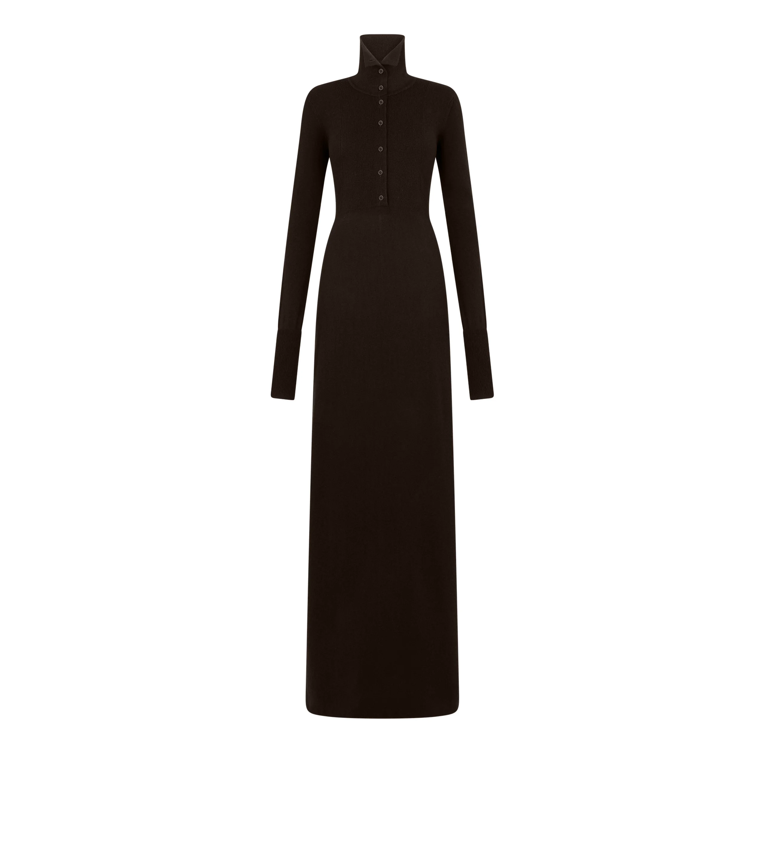 - LONG OPEN TURTLENECK DRESS - LONG SLEEVES - RIBBED KNIT CUFFS AND NECK - DEEP BUTTONED PLACKET - MOTHER OF PEARL BUTTONS - CRAFTED IN FINE CASHMERE - 12 GAUGE - 100% CASHMERE
