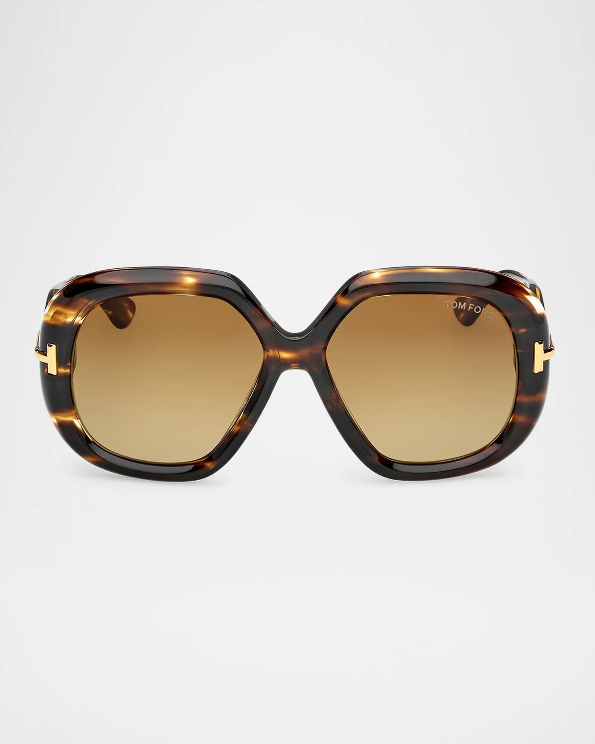- TOM FORD geometric sunglasses - Eye/bridge/temple (in mm): 56-16-135 - Gradient lenses - Saddle nose bridge - Signature T logo inlays on the hinges and temples - Acetate - 100% UVA/UVB protection - Made in Italy - Proposition 65 warning for California residents