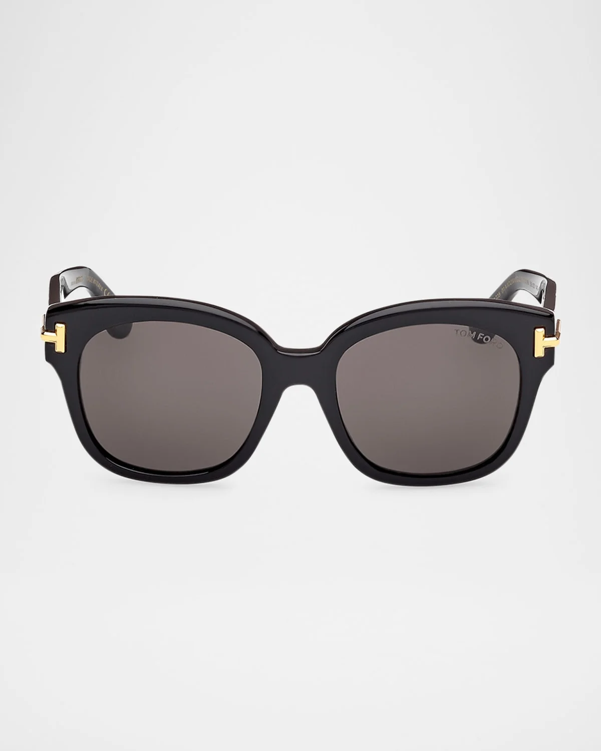 - The TOM FORD EYEWEAR ICON COLLECTION is the maximum expression of luxury. Inspired by personalities with charisma and presence, the collection shines the spotlight on unparalleled workmanship that elevates and enhances each element. Fine processing highlights these styles. Handcrafted Havana colorations and transparent acetate on the inner side of the temples with a new protective layer distinguish the tints of ICON sunglasses. The fine acetate frames are embellished with gold-tone metal inserts and engravings that create a surprisingly harmonious aesthetic. - Seductive thicknesses, volumes, and dimensions are characterized by 3D new logos with a shape that echoes the diamond’s baguette and becomes the new imprint of the brand. Each eye-catching frame with new high-quality ZEISS lenses transmits the strength, value, and personality of the brand through superb comfort, irresistible allure, and optimal vision. Designed to identify and inspire people who seek the true essence of elite style, the collection embodies the legendary quality and craftsmanship of TOM FORD EYEWEAR. - TOM FORD "Icon" square sunglasses in acetate - Lens/bridge/temple (in mm): 55-20-140 - Solid lenses; logo on corner - Saddle nose bridge - Signature T hinges - Thin, tapered arms - 100% UVA/UVB protection - Made in Italy - Proposition 65 warning for California residents