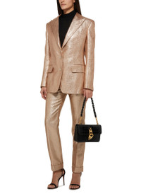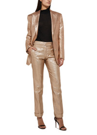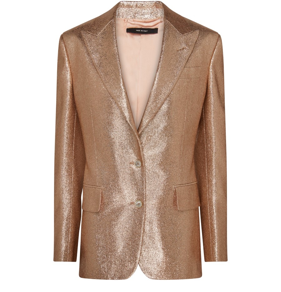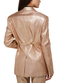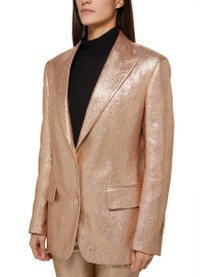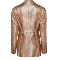 DESCRIPTION - single-breasted - 2 button - long-sleeved - logo at the back label - two front pockets - flap pockets - notched collar - gold finish DETAILS AND CARE MATERIAL: 100% nylon COLOR: gold COUNTRY OF MANUFACTURE: Italy PRODUCT CODE: TFD37743GOLRZA1A00 The model is 5ft 10in / 1.78m tall and wears a size IT 40.