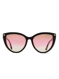 Isabella cat-eye sunglasses Highlights - Black - Cat-eye frame - Gradient pink lenses - Tortoiseshell detail - Gold-tone logo accents - Polished finish - Bold silhouette - These glasses come with a protective case. Made in Italy Composition Acetate 100% SIZE & FIT Measurement Arm Length 5.51 in(14 cm) Bridge Width 0.7 in(1.8 cm) Lens Diameter 2.2 in(5.6 cm) Total Width 5.82 in(14.8 cm)