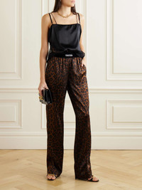 EDITORS'NOTES TOM FORD's pants are modeled after pajama styles but are too chic to reserve for bed - wear yours with mules and a camisole for nights out. They're cut from fluid silk-blend satin patterned with a striking leopard print and have a comfortable elasticated waistband featuring the logo at the center. SIZE & FIT - Fits true to size, take your normal size - High-rise, cut for a straight-leg fit - Elasticated at the waist for a flexible fit - Lightweight, non-stretchy fabric - Model is 175cm/ 5'9" and is wearing a size Small DETAILS & CARE - Leopard-print silk-blend satin, black and white jacquard - Pull on - 94% silk, 6% elastane - Dry clean