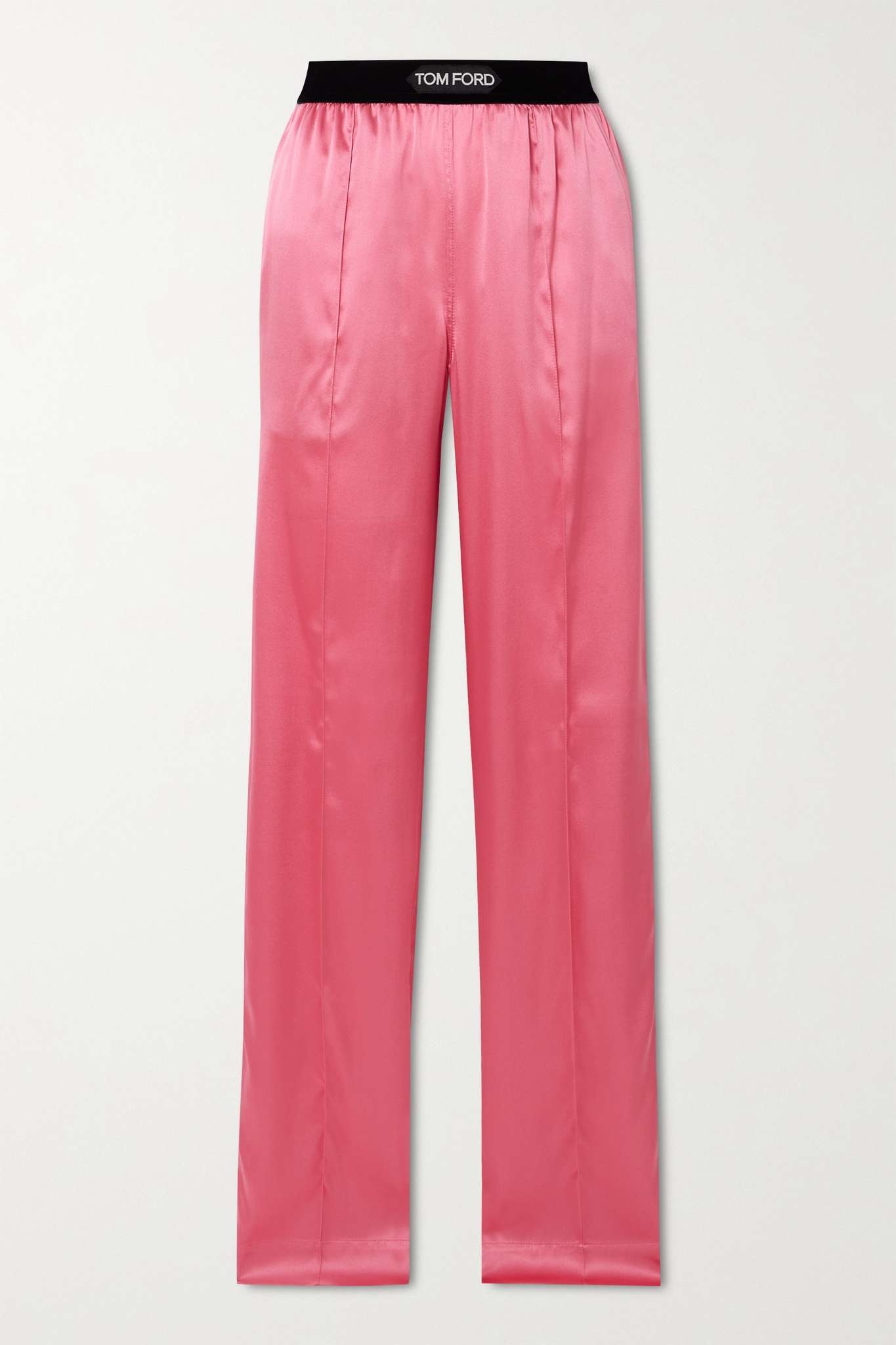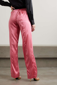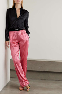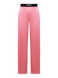 EDITORS'NOTES TOM FORD's pants might be modeled on pajamas, but they feel too glamorous to only wear around the house. They're cut from glossy stretch-silk satin with flowing wide legs and an elasticated waistband, which is jacquard-woven with the brand's logo. SIZE & FIT - Fits true to size, take your normal size - High-rise, designed for a wide-leg fit - Elasticated at the waist for a comfortable fit - Mid-weight, fluid, non-stretchy fabric - Model is 180cm/ 5'11" and is wearing a size Small DETAILS & CARE - Pink stretch-silk satin, black and white jacquard - Pull on - 94% silk, 6% elastane; trim: 90% polyamide, 10% elastane - Dry clean