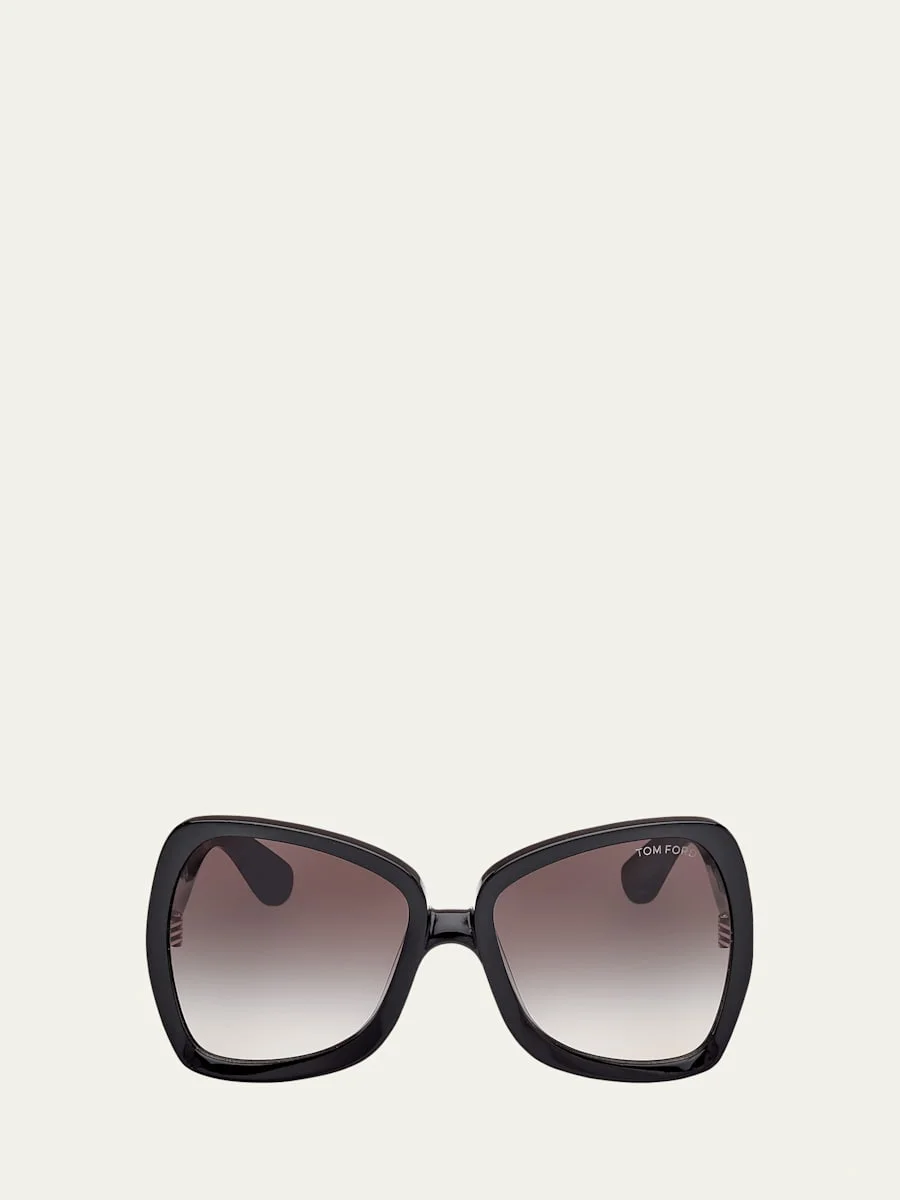 TOM FORD "Jerry" butterfly sunglasses in acetate Eye/bridge/temple (in mm): 6018135 Gradient lenses Saddle nose bridge Thin, tapered arms Classic T logo at the temples Acetate 100% UVA/UVB protection Made in Italy