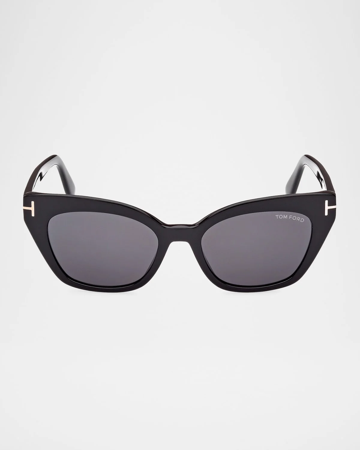 - TOM FORD "Juliette" cat-eye sunglasses in acetate - Lens/bridge/temple (in mm): 52-18-140 - Solid-color lenses - T logo hinge - Thin, tapered arms - 100% UVA/UVB protection - Made in Italy - Proposition 65 warning for California residents
