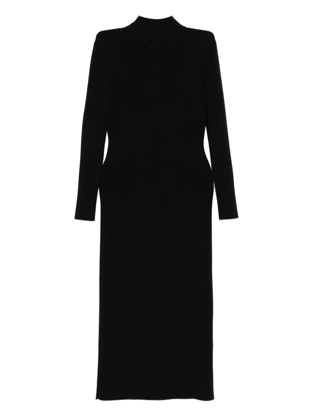 knitted dress Highlights - Black - Ribbed knit - V-neck - Long sleeves Made in Italy Composition Wool 98%, Polyamide 1%, Elastane 1% SIZE & FIT Model measurements Height 5 ft 10 in(1.77 m) Bust/Chest 30.31 in(77 cm) Hips 36.22 in(92 cm) Waist 24.8 in(63 cm) FittingInformation Designed for a close fit throughout Made with a midweight knit, this piece offers some stretch This piece fits close in all sizes – take your usual size Washing instructions Dry Clean Only