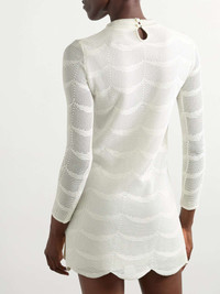 EDITORS'NOTES TOM FORD's mini dress is pointelle-knitted from a breezy cotton and silk-blend. It's lined through the body for coverage and has a fitted waist that flares out to a scalloped hem. Large to size. See Size & Fit notes. SIZE & FIT Model measurements: - Fits large to size, take one size smaller than normal - Designed for a slim fit - Lightweight, stretchy fabric - Model is 177cm/ 5'10", normally wears an IT 40 and is wearing an IT 38 - Bust: 79cm/ 31" - Waist: 61cm/ 24" - Hip: 89cm/ 35" DETAILS & CARE - Off-white cotton and silk-blend - Button-fastening keyhole at back - 57% cotton, 43% silk