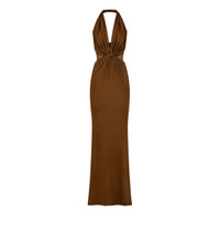 - HALTERNECK EVENING DRESS - FULL LENGTH - FRONT CRISS-CROSS DETAIL AND DRAPPING EFFECT - SIDE MESH INSERTS - OPEN BACK - INVISIBLE ZIP AND HOOK AND EYE FASTENING - CRAFTED IN FLUID KNITTED VISCOSE STRETCH JERSEY - 97% VISCOSE 3% ELASTANE ,
