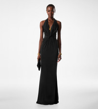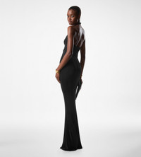 - HALTERNECK EVENING DRESS - FULL LENGTH - FRONT CRISS-CROSS DETAIL AND DRAPPING EFFECT - SIDE MESH INSERTS - OPEN BACK - INVISIBLE ZIP AND HOOK AND EYE FASTENING - CRAFTED IN FLUID KNITTED VISCOSE STRETCH JERSEY - 97% VISCOSE 3% ELASTANE ,
