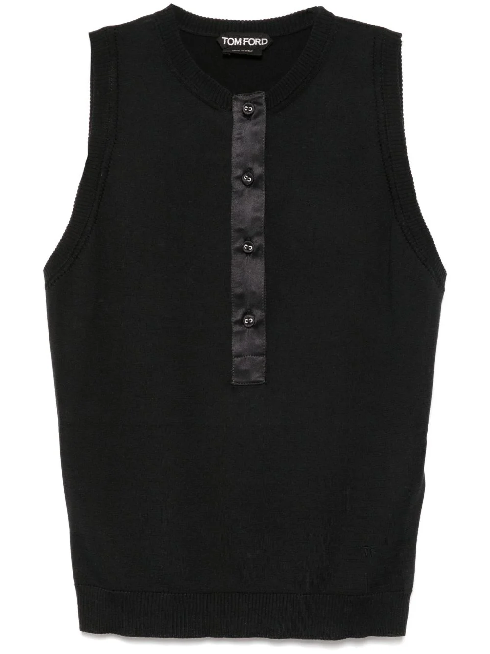 knitted tank top Highlights - Black - Crew neck - Sleeveless - Ribbed hem Made in Italy Composition Silk 55%, Cotton 45% SIZE & FIT Model measurements Height 5 ft 10 in(1.77 m) Bust/Chest 31.49 in(80 cm) Hips 35.43 in(90 cm) Waist 25.19 in(64 cm) Washing instructions Dry Clean Only