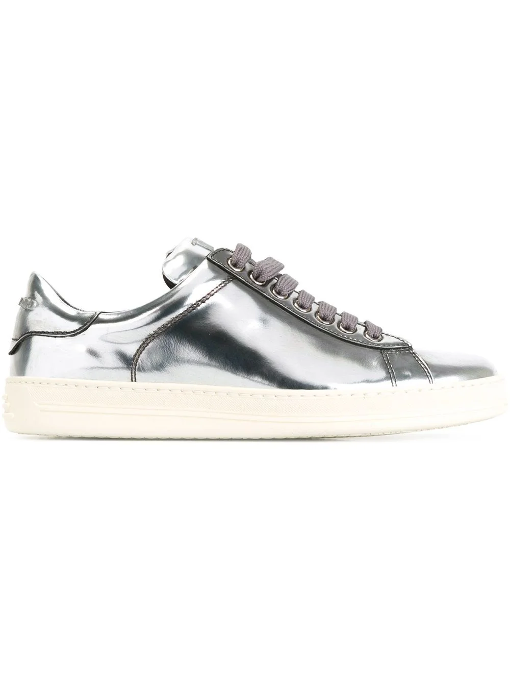 lace-up sneakers Silver-tone calf leather lace-up sneakers from Tom Ford. Made in Italy Composition Lining: Leather 100% Outer: Calf Leather 100%, Rubber 100% Sole: Rubber 100% SIZE & FIT Measurement WEDGE 1.18 in(3 cm)