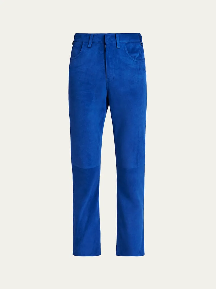 Lamb Suede Slim-Leg Ankle Pants