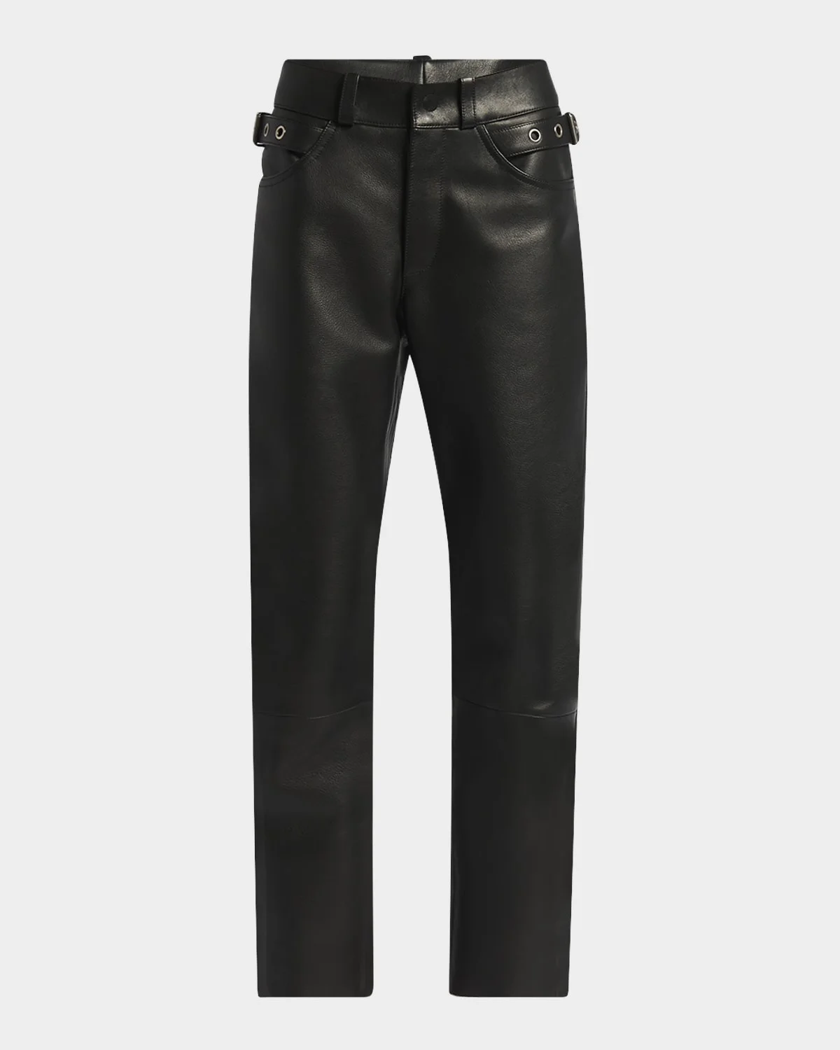 Leather Buckle Straight-Leg Biker Pants
