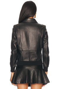 Details - Self: 100% lamb leather - Lining: 100% viscose - Made in Italy - Professional leather cleaning only - Exposed front zipper closure - Side zipper pockets - Genuine leather with ribbed knit trim - Our Style No. TFOF-WO58 - Manufacturer Style No. CSL778-LEX373