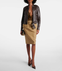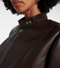 Tom Ford’s designs embody modern sophistication with fine materials and sleek silhouettes. This leather jacket features a zip-up front and two practical pockets, while the belted waist adds a twist to the look. Product Details - Material: 100% lamb leather - Care instructions: specialist clean - Made in Italy - Designer color name: Dark Chocolate - Item color: brown - Lining: 100% viscose - Contains non-textile parts of animal origin - Closure: two-way zipped front with snap-button fastenings - Cuff: zipped - Pockets: zipped pockets - Attached belt - Includes: garment bag - Item number: P01053662 Size & Fit - True to size - Straight fit - Non-stretchy fabric - Slightly cropped - The model seen in the picture is 178cm-5'10" and wearing a size IT 38