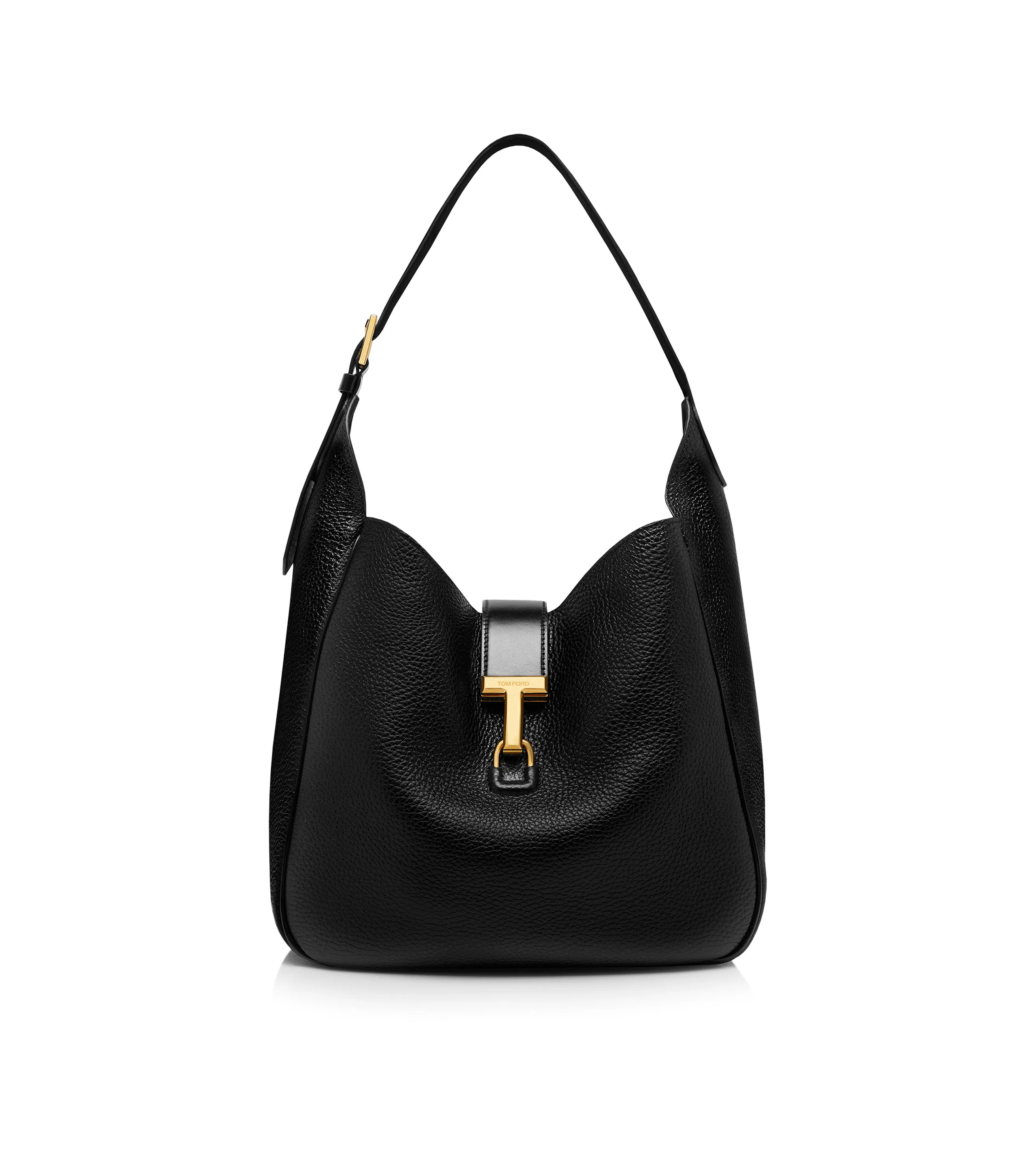 - T PIN CLASP DETAIL WITH ENGRAVED TOM FORD LOGO - ADJUSTABLE LEATHER SHOULDER STRAP - 1 COMPARTMENT - 1 INNER ZIPPED POCKET - 1 INNER OPEN POCKET - LINING: SUEDE LEATHER - DIMENSIONS: 30 X 29 X 12 CM - MEDIUM STRAP DROP: 26 CM - 100% CALFSKIN