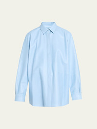 TOM FORD shirt jacket is crafted from supple calfskin leather Point collar; concealed button front Long sleeves; button cuffs Yoked back Loose fit Shirttail hem Leather Made in Italy Online Inquiries: BGS21_BAU3V| Store Inquiries: #5277421