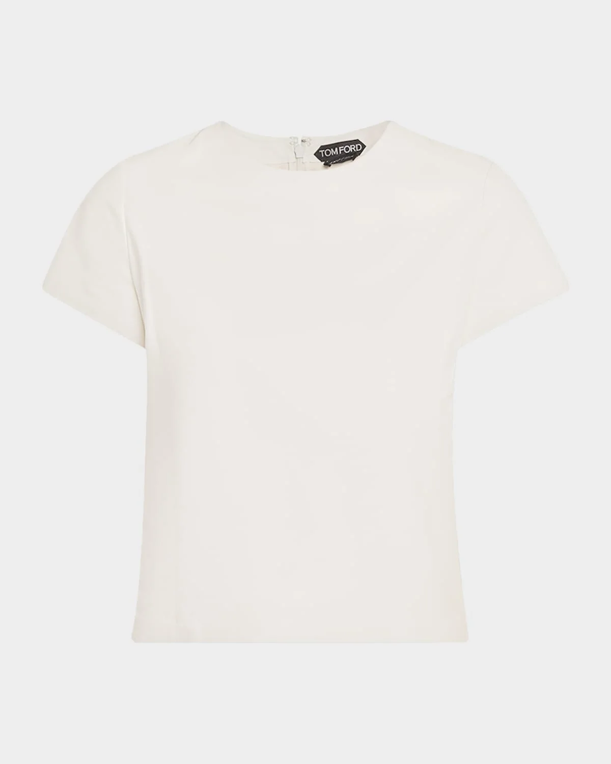 TOM FORD top in a structured yet supple calfskin leather Crew neckline Short sleeves Boxy fit Hip length Back zip Leather Made in Italy