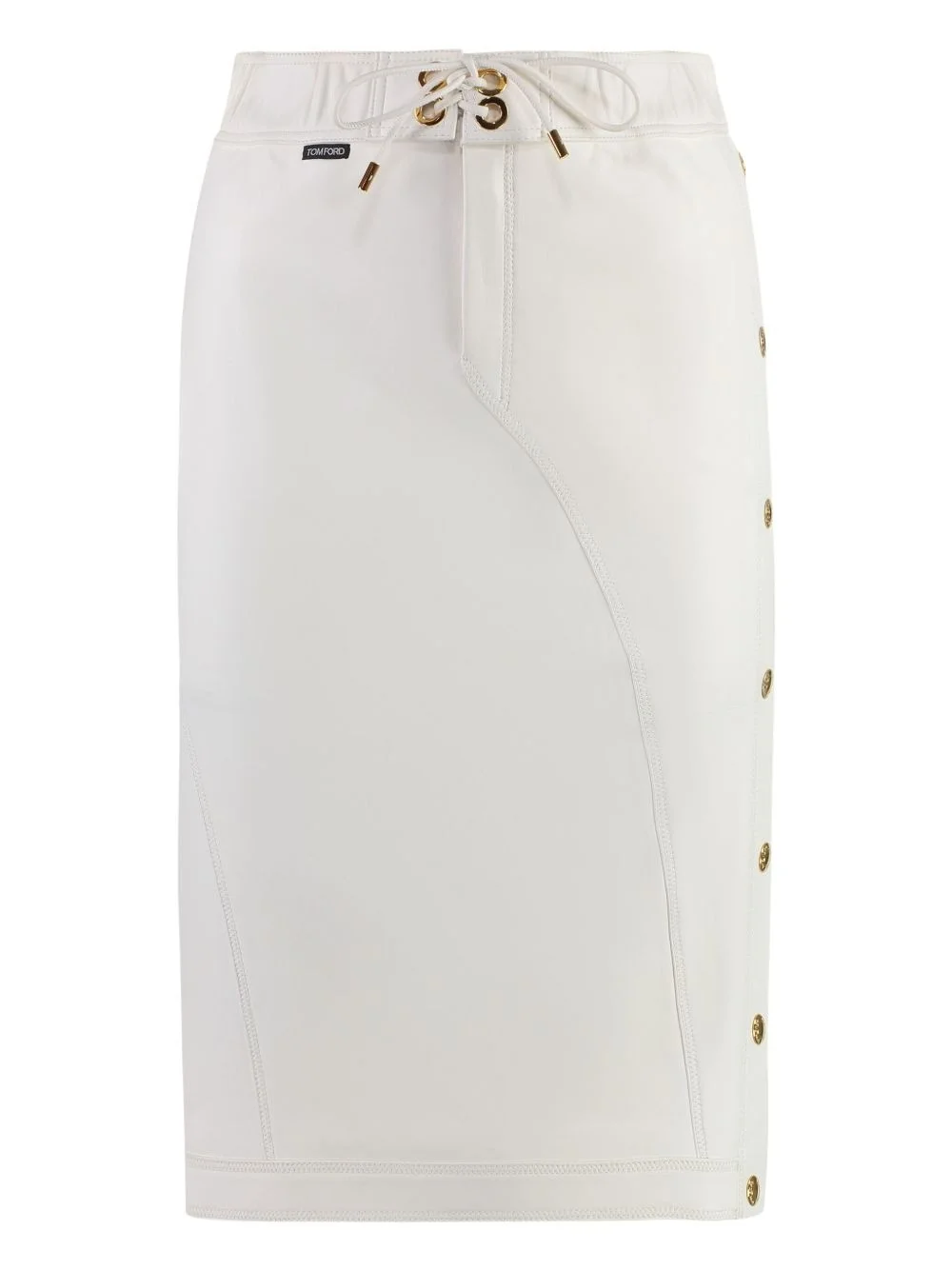 leather midi skirt Highlights - White - Side button fastening - Elasticated drawstring waistband - Applique logo - High-waisted Made in Italy Composition Leather 100%
